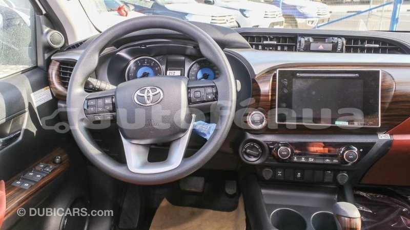 Brand new Toyota Hilux SR5 V6 for sale in Dubai. White 2020 model, available at Al Karama Motors Exhibition. This car has automatic transmission, 6 cylinder engine, 18″ wheels and burgundy interior. Imported specs.